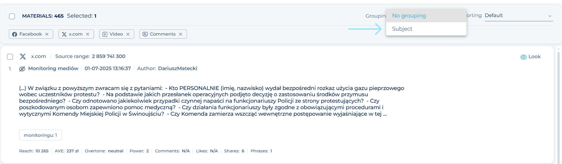 Use the option that will make your work with materials easier. All you have to do is to go to “Group by topics” in the upper right corner of the publication window. After enabling grouping on the Feed, all materials will be organized by topic.